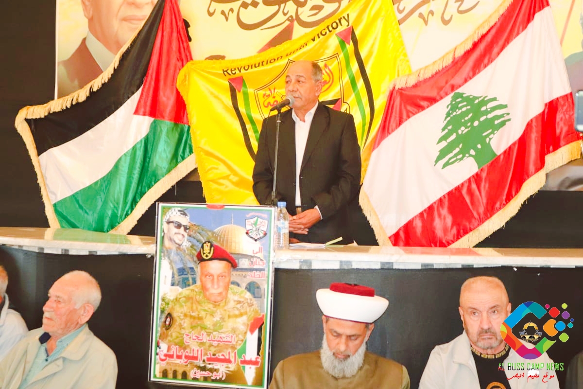 ابنت حركة فتح وهيئة المتقاعدين العسكريين الفلسطينيين في منطقة صور الشهيد المناضل عبد المجيد اللوباني اليوم الثلاثاء ٩-٥-٢٠٢٣ في تجمع المعشوق.